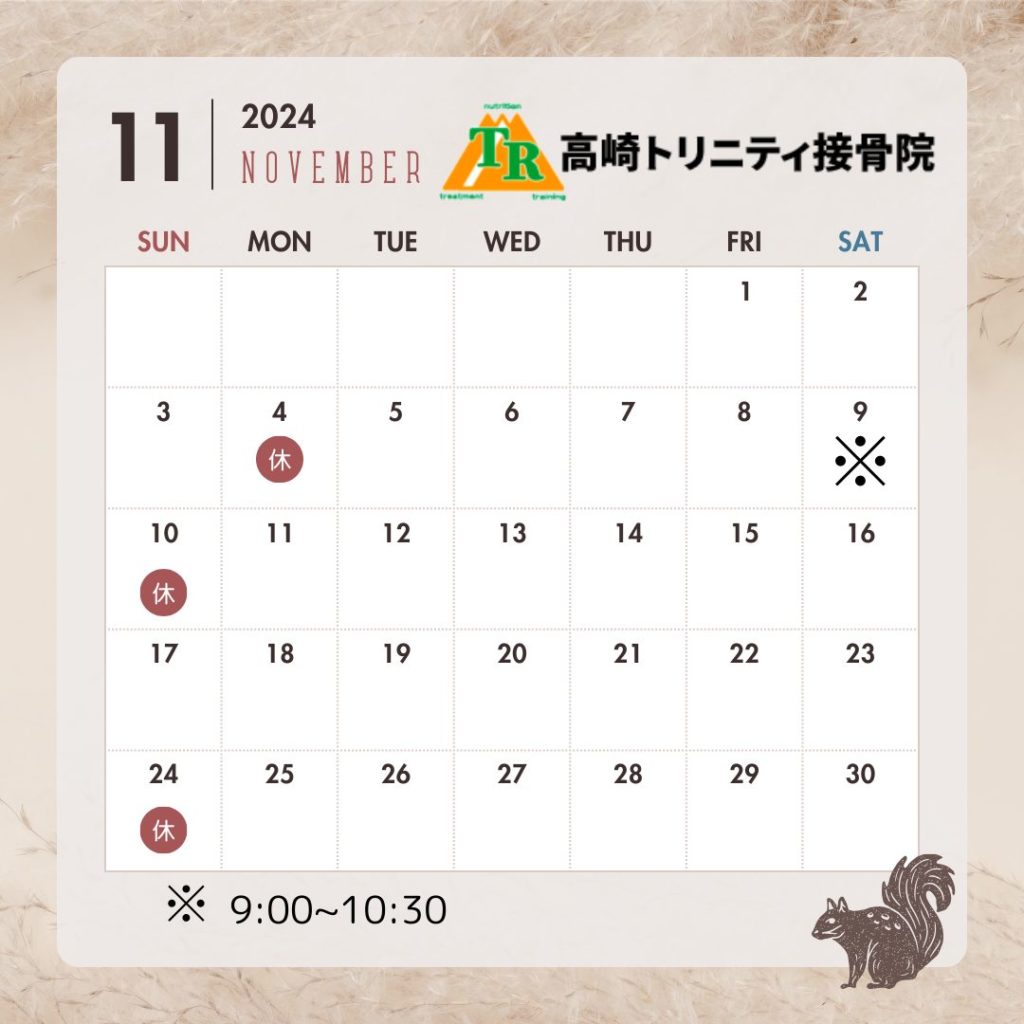 11月の営業日のご案内です。